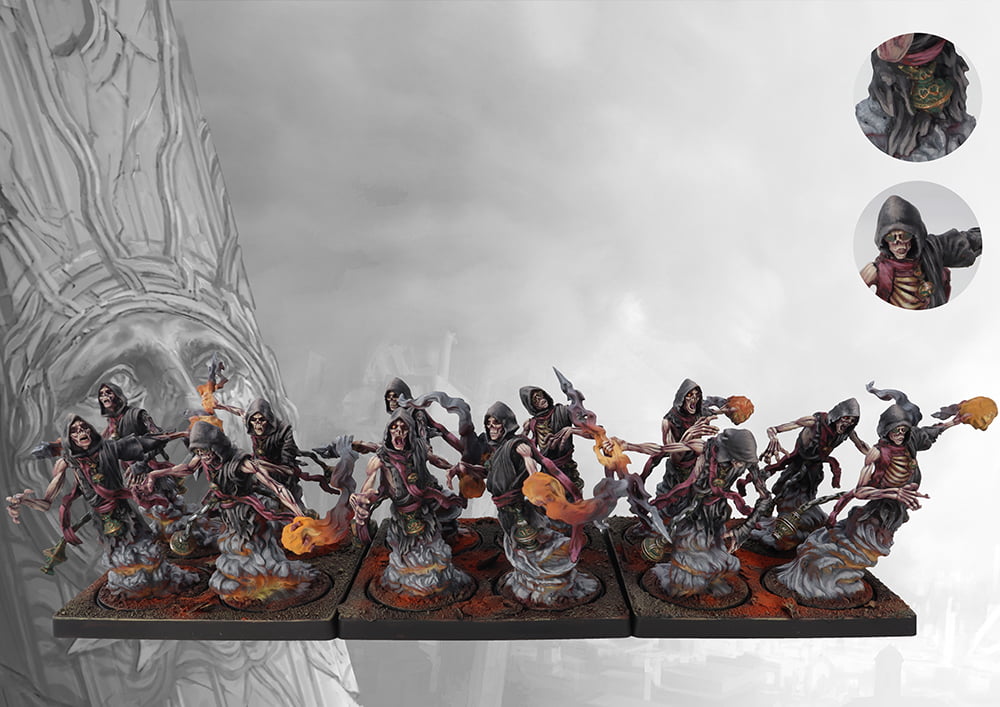 Those cultists who lack the ambition or brilliance required to reach unlife on their own terms are granted one final chance to become one with their Lord. In the final hours of their life they climb onto a bonfire lit with the unholy flames of the Pyre. Kheres are the animated charred remains of those who manage not to go insane, the Moroi are not so lucky…